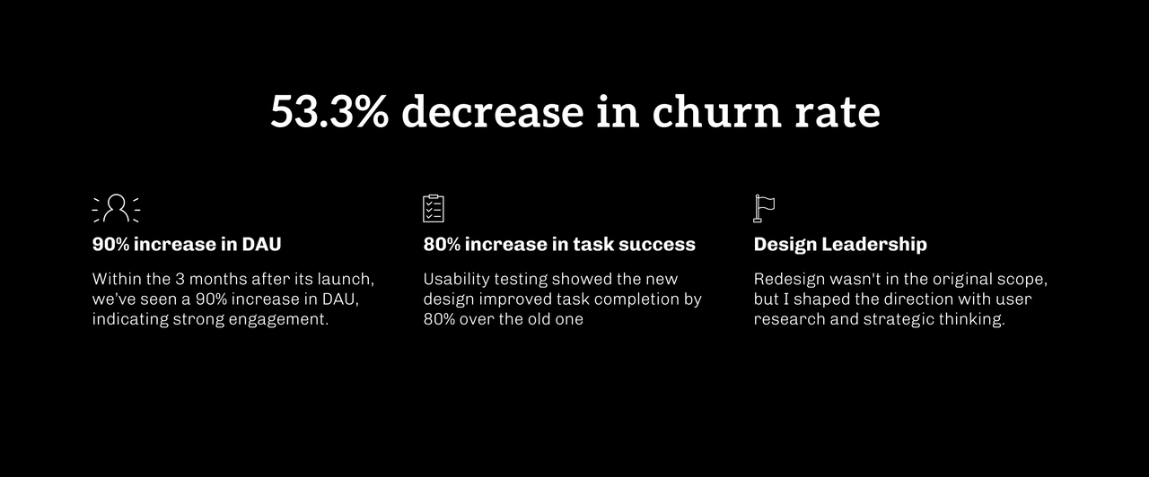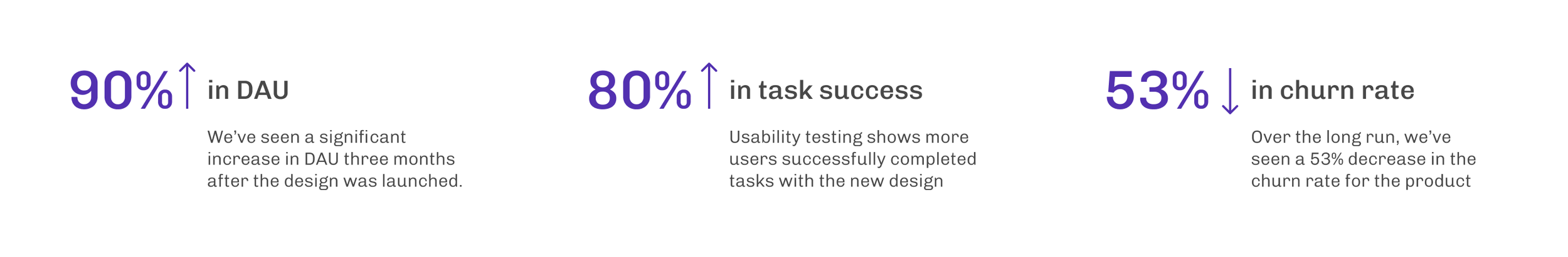 We monitored and evaluated the design after its launch. Over the 3 months, we've seen a significant increasae in daily active use, indicating that the new design has brought back users, and has increased engagement.