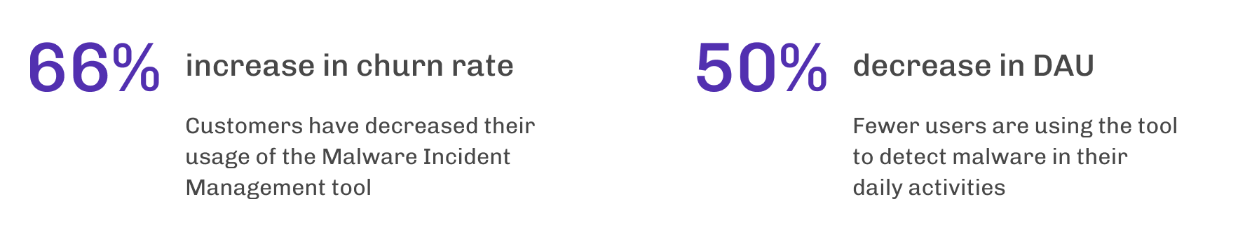 Malware Incident Management is a tool that security engineers use to monitor and respond to malware and suspicious activity in files. However, there has been an increase in churn rate and a decrease in daily active users over the past few months.